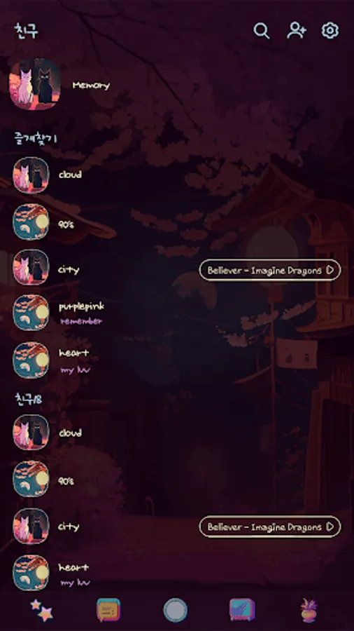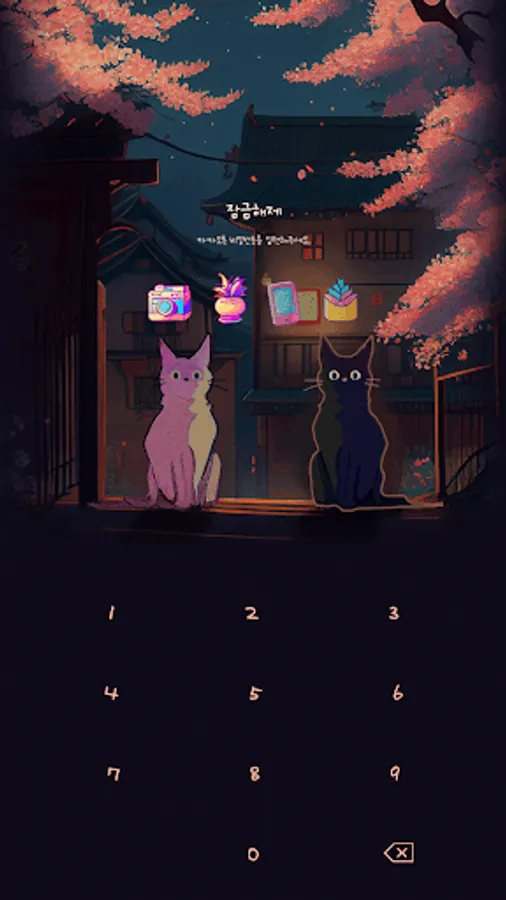 카카오톡 테마 - 벚꽃이 핀 밤과 검은 고양이 Screenshots