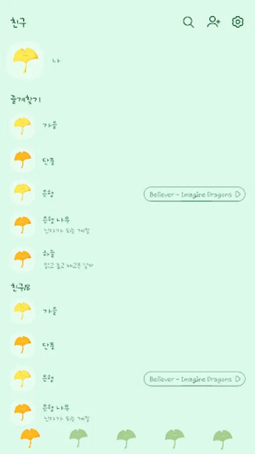 카카오톡 테마 - 안녕,가을 은행잎_베이비민트 Screenshots
