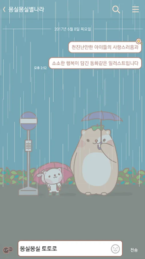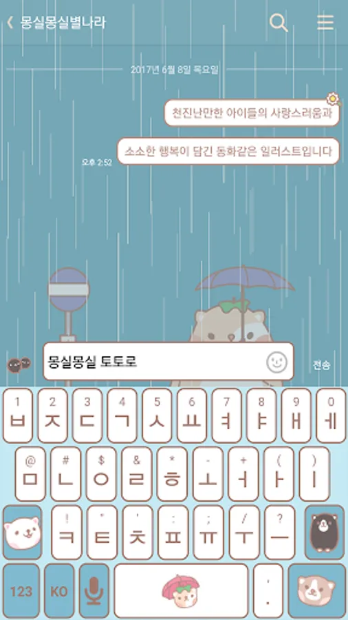 1. KakaoTalk theme - mongsil mongsil Totoro to run after installation,