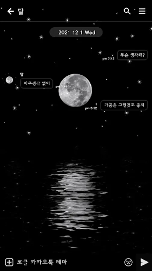 카카오톡 테마 - 밤하늘_물에 비친 달