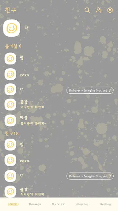 카카오톡 테마 - 페인트 마블_그레이 옐로 Screenshots