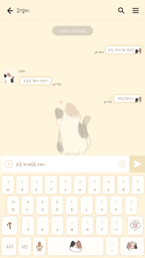 카카오톡 테마 - 빼꼼 삼색 고양이_소프트 베이지 Screenshots