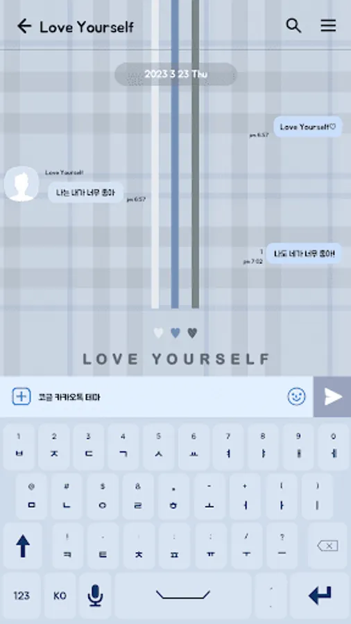 카카오톡 테마 - 심플 블루 패턴 라인 러브 유어셀프