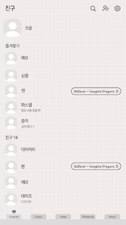 카카오톡 테마 - 심플 라인_마일드 그레이 Screenshots