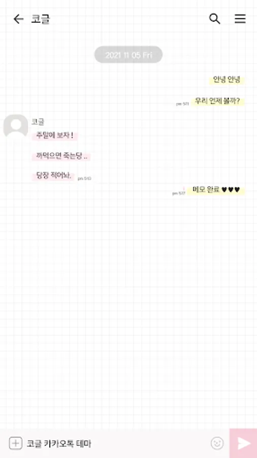 카카오톡 테마 - 심플 라인_옐로우 핑크 (카톡테마) Screenshots