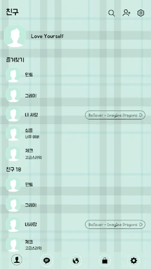 카카오톡 테마 - 심플 민트 패턴 라인 러브 유어셀프 Screenshots