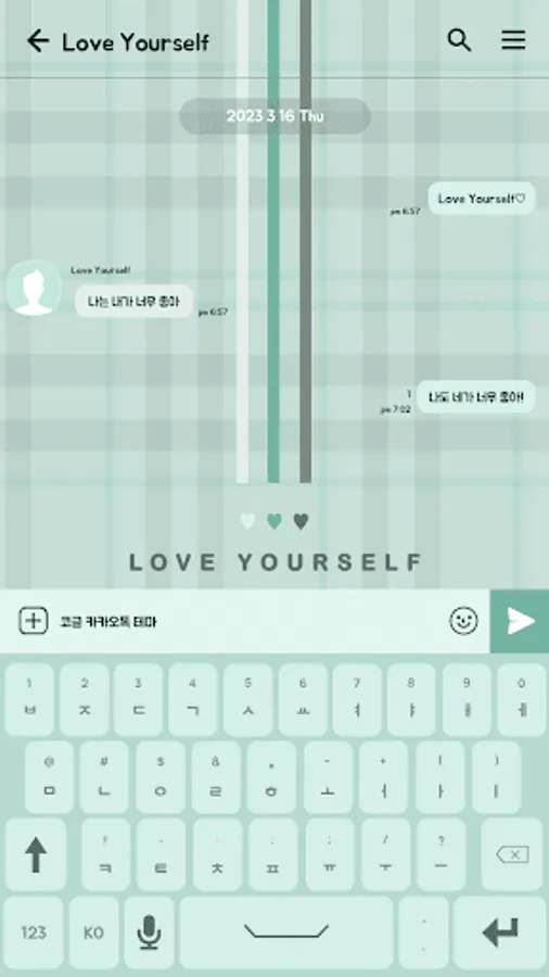 About 카카오톡 테마 - 심플 민트 패턴 라인 러브 유어셀프