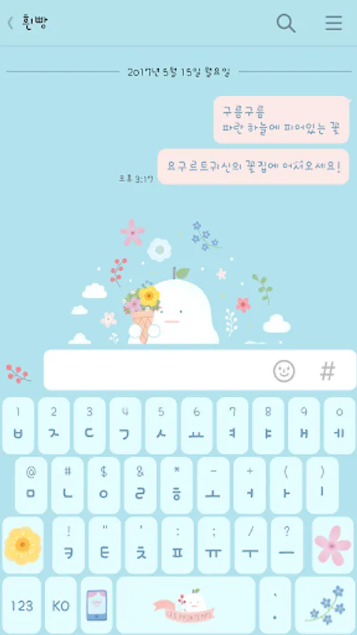1. KakaoTalk theme - Running yogurt ghosts and flowers after Installation