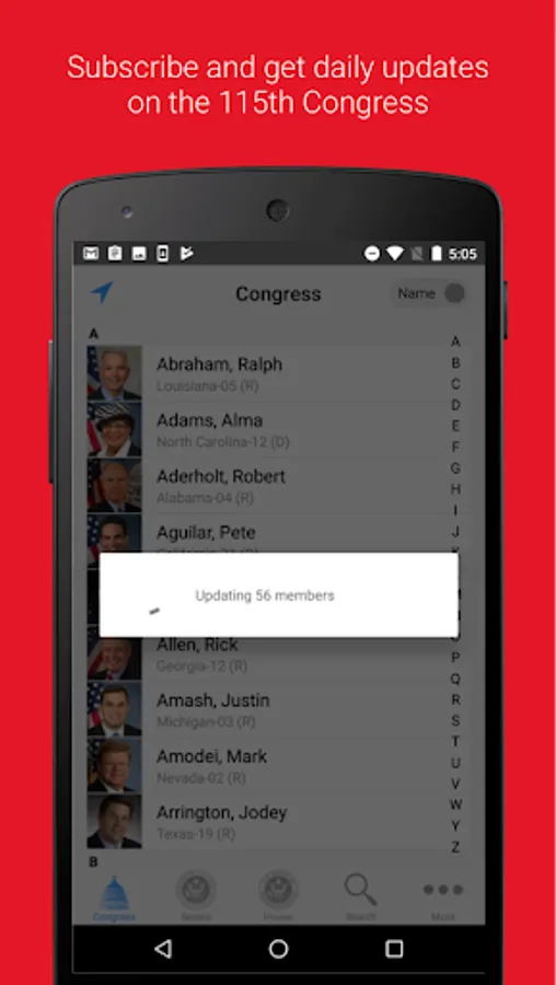 With your monthly subscription you will get updates over-the-air for changes in members, staff, and committee assignments. Note: the app loads with this year's Congress so you can see what we offer but it won't updated without a subscription.