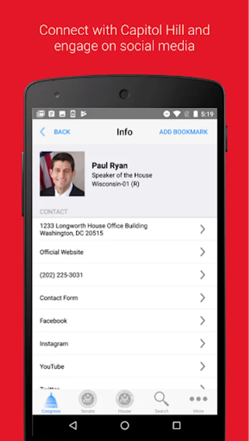 This is not an official app from the United States Congress. The data for this app is curated by our team through making phone calls to congressional offices, research, and links to official sources on Congress.gov and elsewhere.