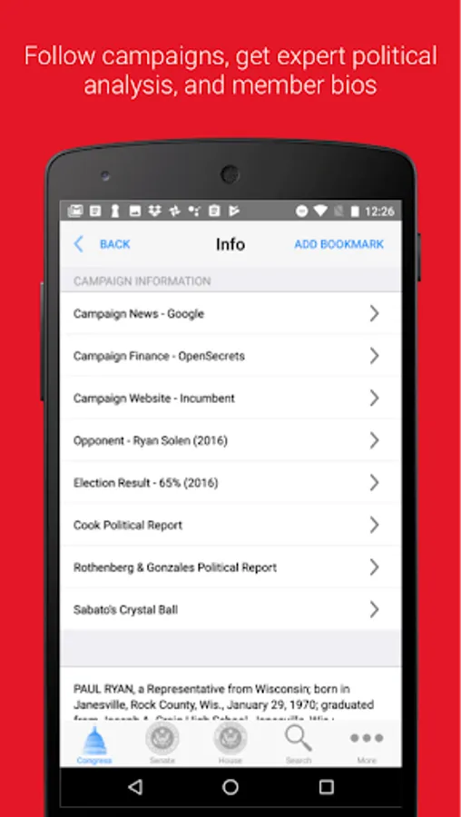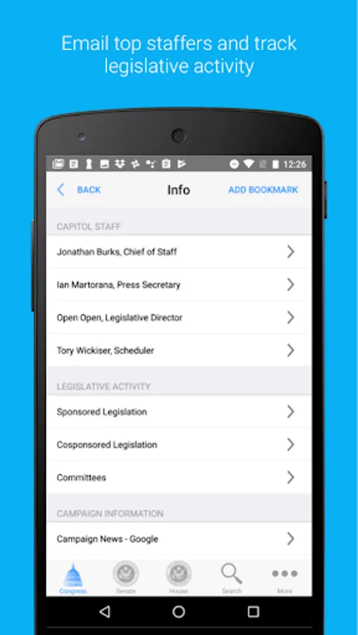 This app is intended for people who work in the media, government relations, political professionals, and activists who need to have the very latest updated information on Congress.