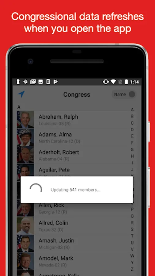 Other features include the ability to locate members based on your current location or zip code, set bookmarks, see congressional office maps, check campaign financial information from OpenSecrets.org, and search the official legislative database. This application updates over the air on a continual basis so you'll always get the very best information we have.