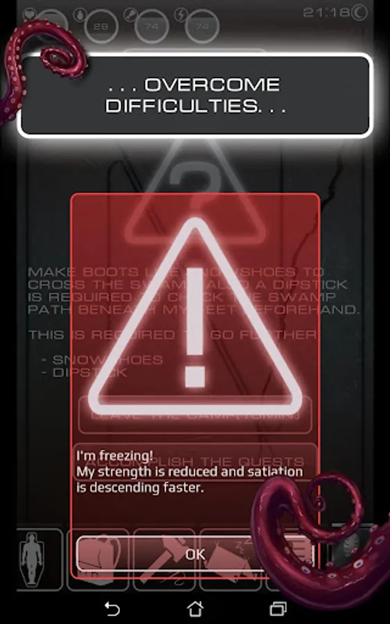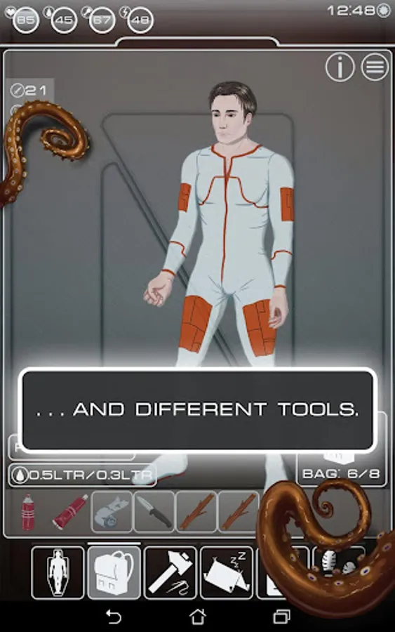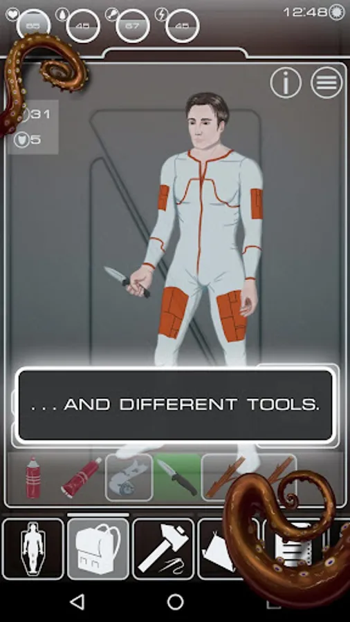 It's not a simple survival game, it's a comletely new mobile game expirience. It's an exciting sci-fi story with horror elements that implemented via text-based RPG with crafting system and time management. It's a philosophical thriller.