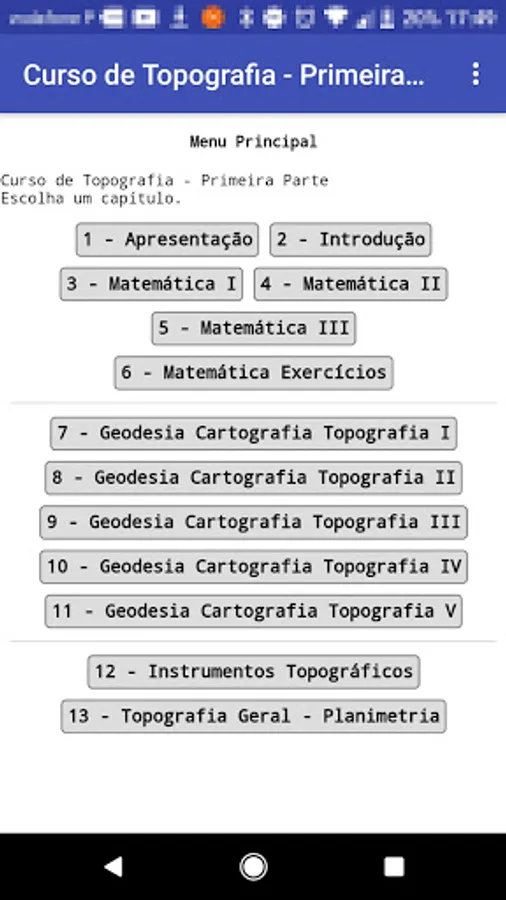 This app is the first part of a Classical Topography course. You can use your mobile device to learn topography.