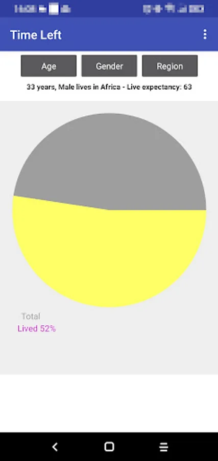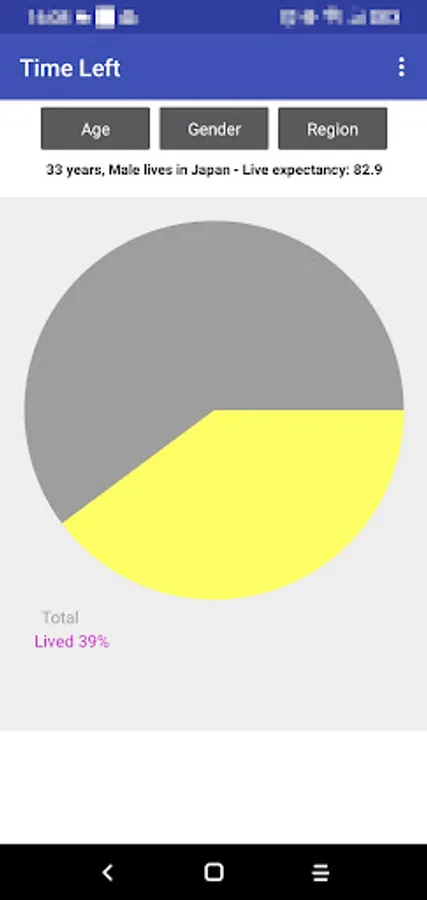 With this application you can get an idea, by visualizing a pie chart, the lifetime already lived and the life expectancy.