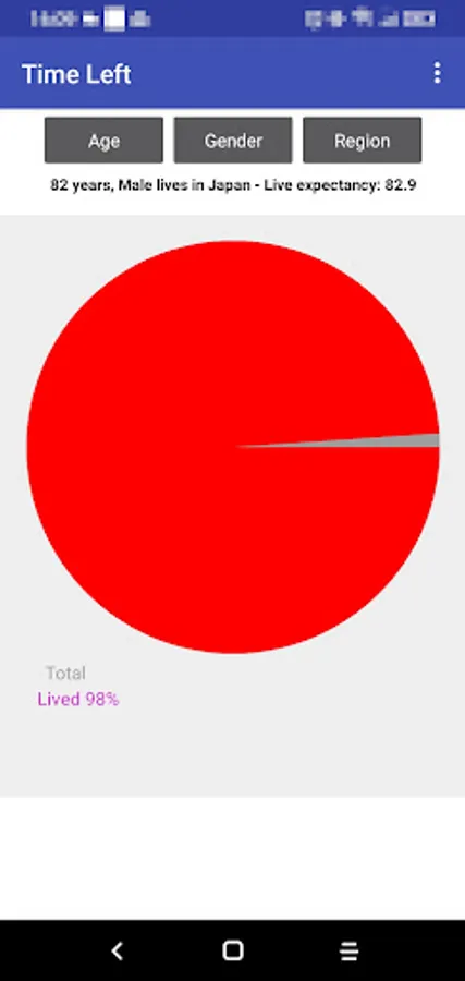 It's an application to use with some distance from age concerns, however it tells us how much we've already enjoyed and can still enjoy life. You should use the app to become aware of how to use your time.