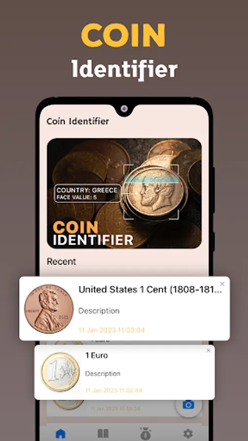 Coin collectors will love the functionality, utility, and ease-of-use of Coin Identifier Coin Scanner coin checker coin scan. Identify coins is easy, just take a photo or upload a photo from the gallery and wait for the results in a split second, coin recognition, coin snap value guide, coin checker, coin scan. This new app allows you to scan coins and instantly identify them based on their unique markings and features. No more manual research or guesswork needed - simply scan coins and let the app do the rest for you coin checker. Coin Snap App is a mobile application that allows users to quickly and accuracy identify coin, snap coin, coin scan.