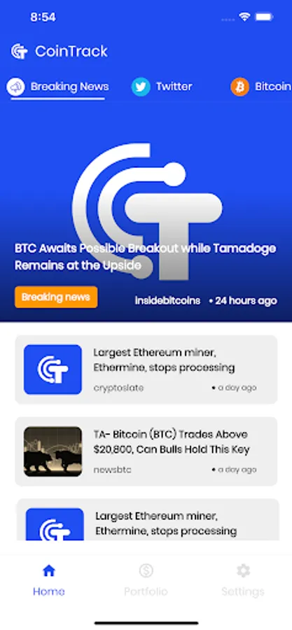 The first decentralized app that tracks the latest crypto news as well as the value of your portfolio.