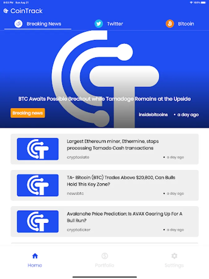 Integrated with open-source API’s to make CoinTrack truly decentralized and unbiased. This means you’ll get your impartial news from over 10+ crypto news outlets to bring you the latest, freshest and most equitable updates regarding everything crypto!