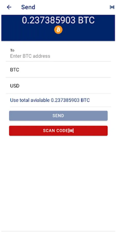 Send: You can send bitcoin to any valid address by inputting the address or by scanning the bar code.