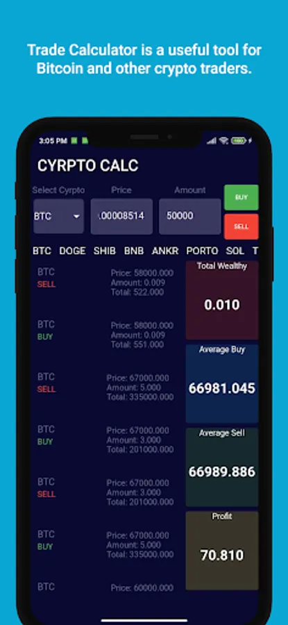 Trade Calculator is a useful tool for Bitcoin and other crypto traders. Crypto Calculator calculates the buy and sell levels, showing the lowest level at which you should sell. Crypto Calculator calculates your trading earnings for you. If you are constantly trading and cannot calculate your earnings, this app is for you. Crypto Calculator is a good trading simulation