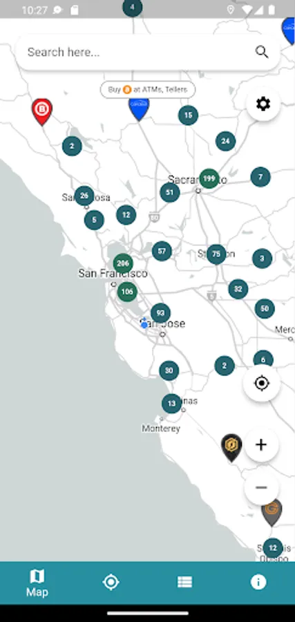 - Bitcoin ATM map: navigate for locations on the map, click each marker for details