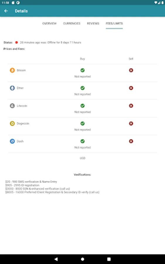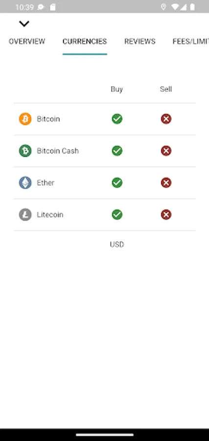 - Other services page: a list of services in selected countries, that allow to buy or sell crypto for cash
