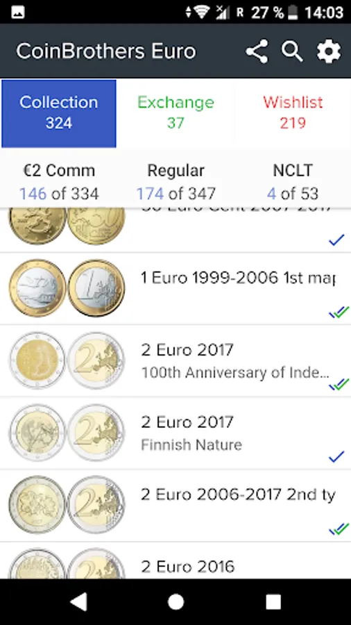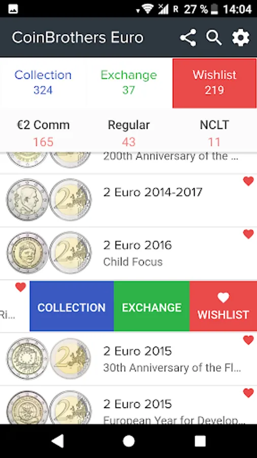 • Share your collection, exchange and wishlist on Facebook, Telegram, WhatsApp or any other social networking service or messenger.
