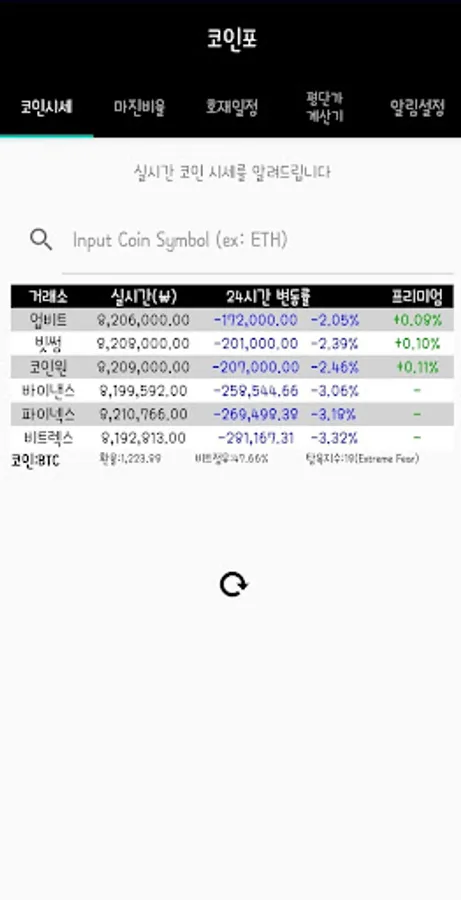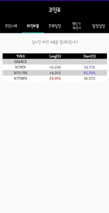 Bitcoin, Ethereum, Ripple, etc. are quoted for each exchange. It provides a ratio for the margin (long / short) and provides a unit price calculator.