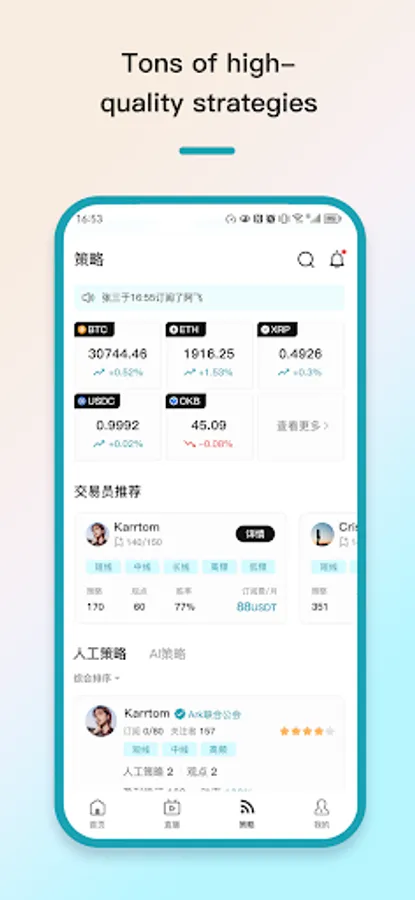 Top traders continue to push high-quality trading strategies and real-time notifications to help you accurately grasp market changes and achieve efficient and stable digital asset profits.