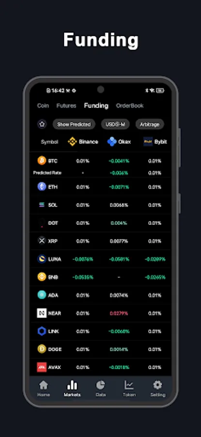 1. Exchanges: View markets for crypto exchanges, including Binance,Binance.US,FTX US, Coinbase, Kraken, Kucoin, OKEx, Bitget, FTX, Deribit, Bitmex, DYDX,Huobi,Bybit and many more.
