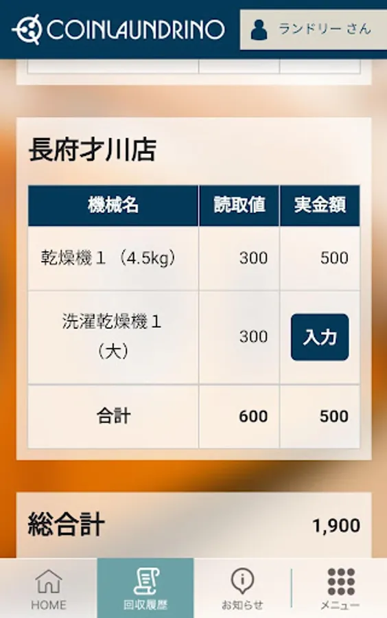 Coin laundry sales aggregation system "Coinland Rino", this all "I understand"