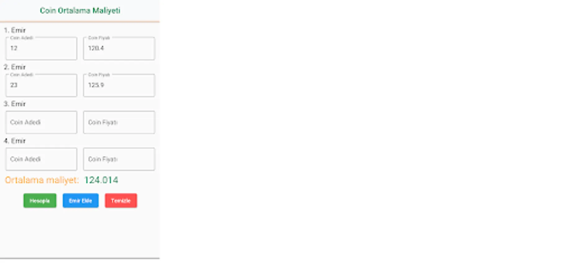 Coin Ortalama Maliyet Hesaplay Screenshots