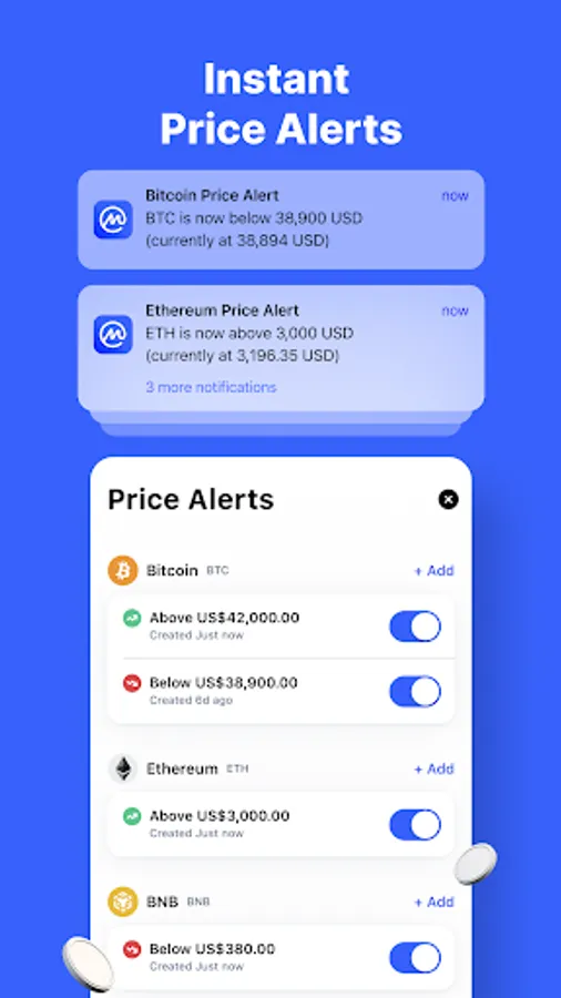 π Crypto prices alerts for your favorite cryptocurrencies or Bitcoin