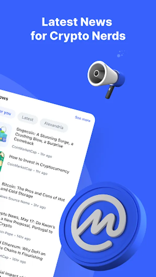 CMC is the Cryptocurrency NΒΊ1 source for Bitcoin BTC & Crypto news, coin stats and crypto charts. Stay up-to-date with daily live Bitcoin & crypto prices, coin stats and crypto market trends with our crypto tracker app. Choose your favorite cryptocurrencies or blockchain projects for your crypto portfolio tracker and get all the crypto data updated in real time. It has never been easier to have your crypto portfolio, coin stats and latest Bitcoin, Ethereum, Dogecoin, Binance BNB and crypto news together in the same crypto tracker app.