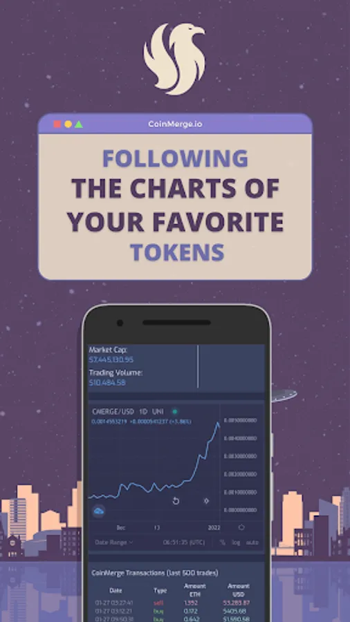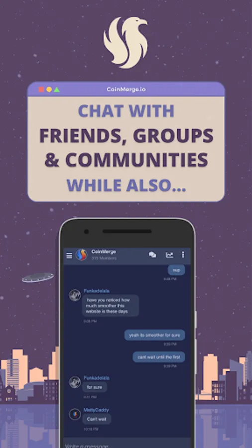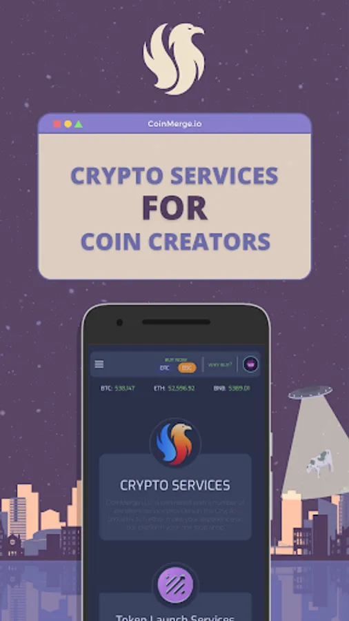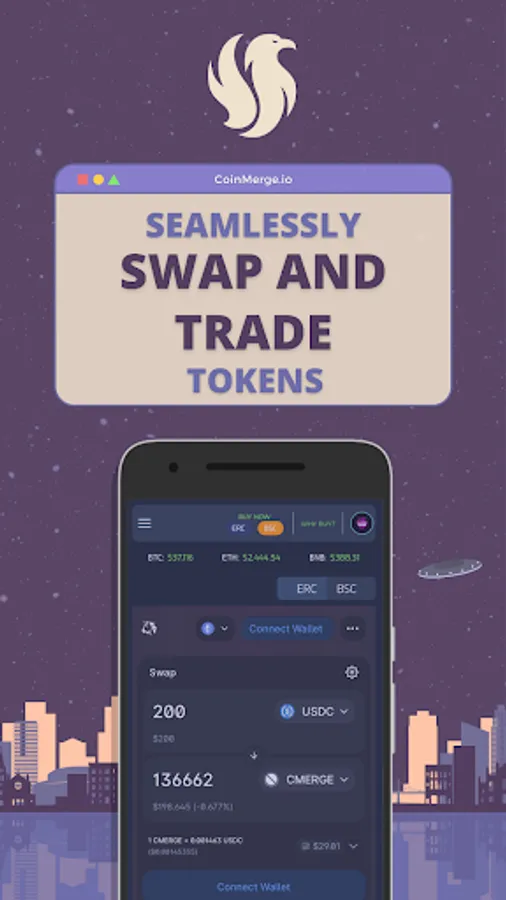 CoinMerge grants a new level of accessibility for investors and token owners, regardless of their experience level. Users can Chat on coin specific chatrooms with the corresponding chart and data on the same screen, Direct Message other users, and create group chats for call groups or specialty chats. The platform features a Swap on a CEX and DEX for quickly and easily trading tokens, on ramping fiat to crypto, then off ramping crypto back into fiat through your bank. There is an NFT marketplace where users can mint, buy, sell and auction NFTs as well as have access to unique CoinMerge LLC NFTs. CoinMerge.io featured a designated education center called "Crypto DeFined" with term and slang definitions, educational videos and 'how to' tutorials. CoinMerge.io has also expanded into hosting and offering additional resources through partnered companies on our "Services" tab.