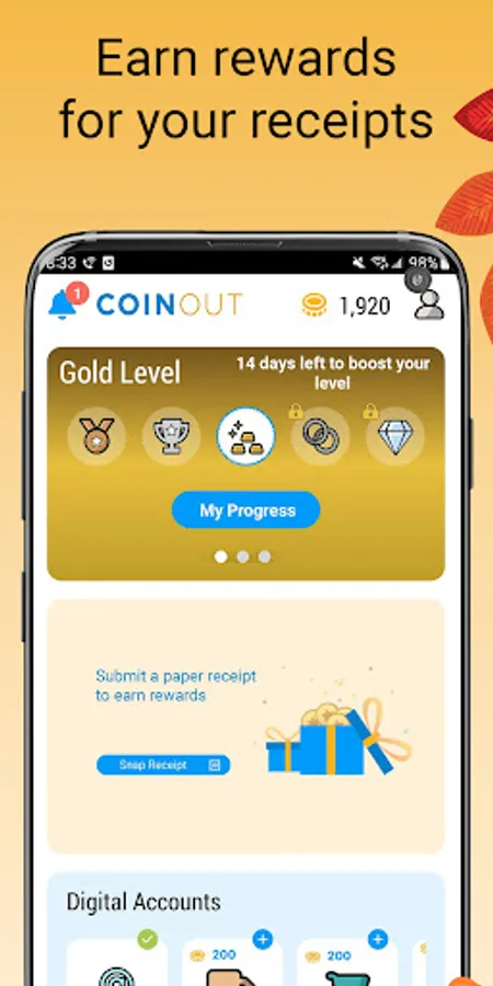 Earn valuable gift cards and rewards just for scanning and submitting your everyday paper and online order receipts. Easily submit and scan receipts, earn Coins, and redeem your Coins directly in the CoinOut receipt scanner app for great rewards.