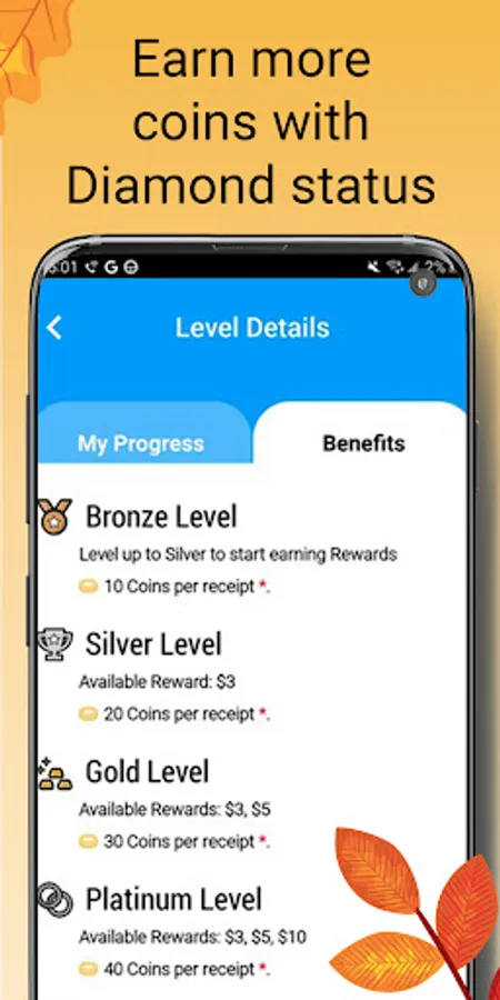 With five reward levels, you’re in control of your earning power. When you reach higher reward levels, you’ll increase the number of Coins that you can earn for each receipt and online order. The higher your reward level, the more Coins you earn for each receipt or online order. Along the way, collect badges and instant win game plays to earn even more!