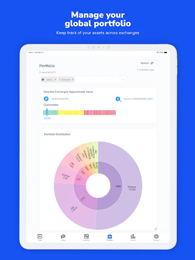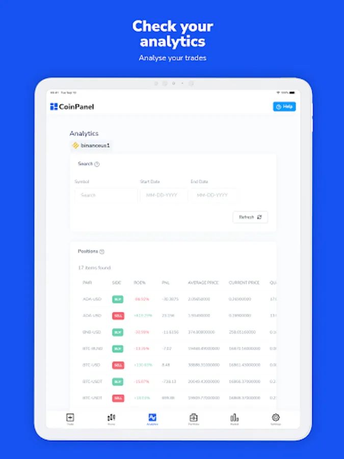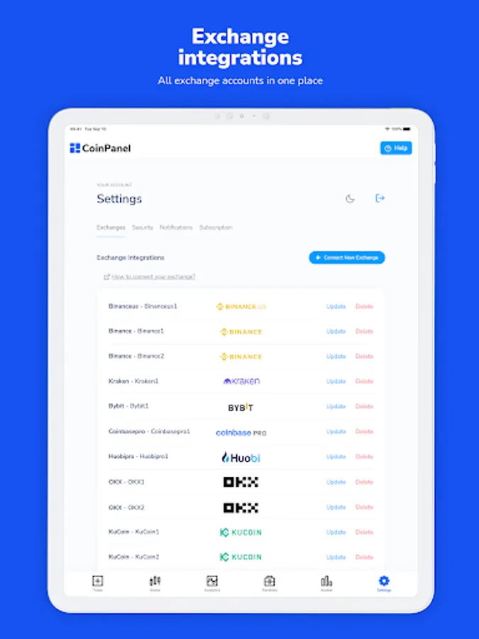 On one unified platform, CoinPanel allows you to trade efficiently across multiple exchanges, view real-time analytics for your crypto trades, including profits and losses, and manage your crypto portfolio.