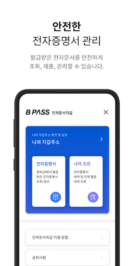 You can quickly and conveniently issue various certificates with non-face-to-face identification without complicated procedures, and manage cumbersome identity verification with one B PASS (non-pass).