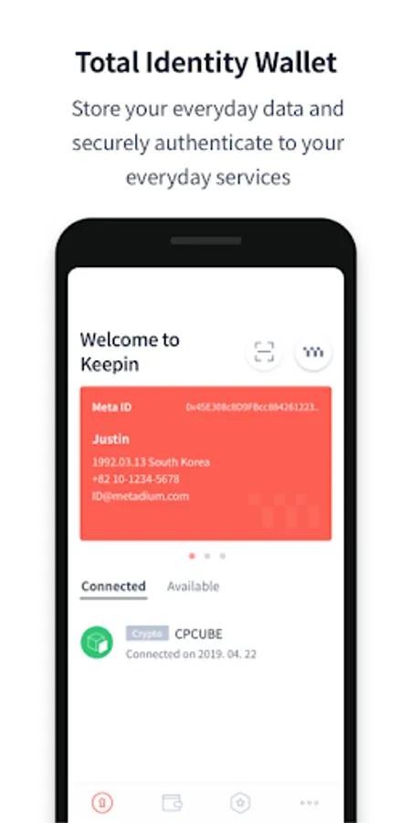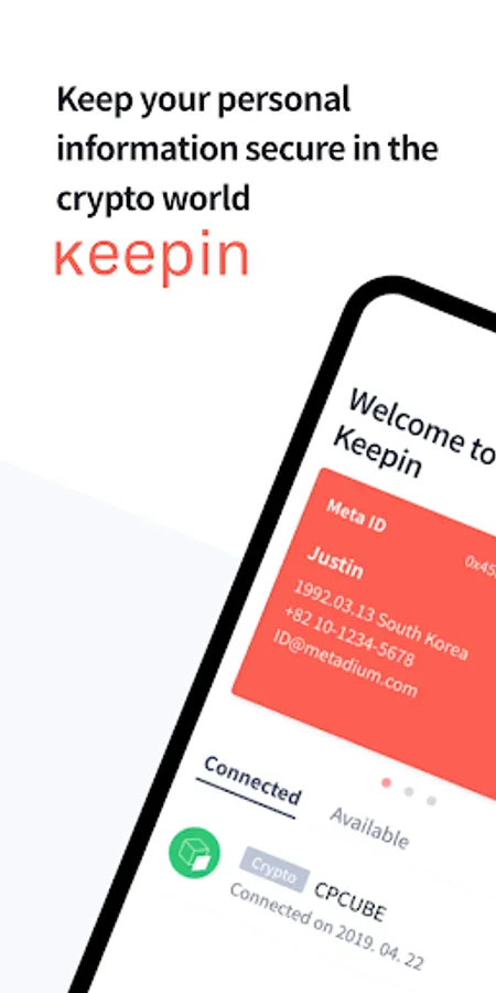 Updated version of Keepin will support users to create and manage Meta ID, decentralized identifier (DID) of Metadium blockchain. With registered Meta ID, users will be able to sign-in to multiple services in highly secure and convenient way. In addition, Keepin enables users to securely store everyday data and easily manage META via wallet.