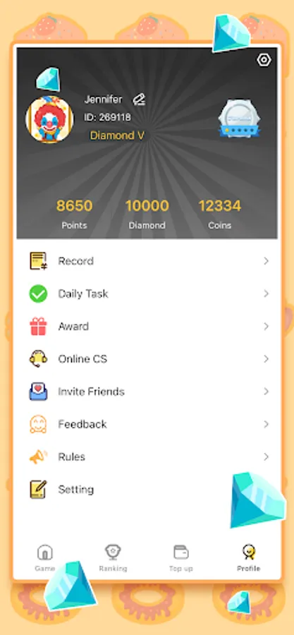 [Free coins] Logging up our app, new user will get 60 free coins. And we give more free coins to users, who log in our app daily and complete the daily task and member achievement. Also, there is a ranking, giving more coins to users who takes the high position by playing well.