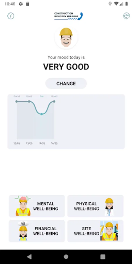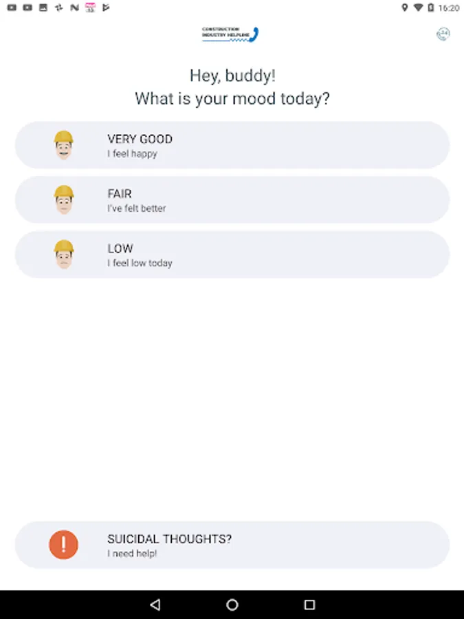 We recognise that not everyone feels comfortable talking about their feelings or personal situation, so the app is aimed at construction workers who would like to find out more information about how they can perhaps help themselves or if necessary, take the next step in seeking professional help. It is a preventative tool and aims to provide support at the initial stages of a situation so that the problem does not reach a life critical stage.