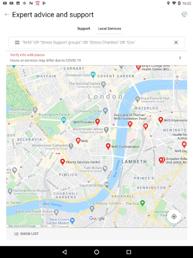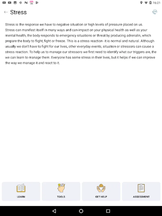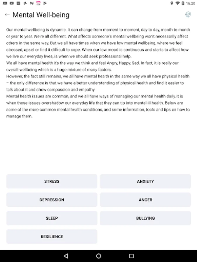 Benefits: The app helps cut through the amount and complexity of information about welfare and well being topics and delivers a refined list of contacts for accessing ongoing support