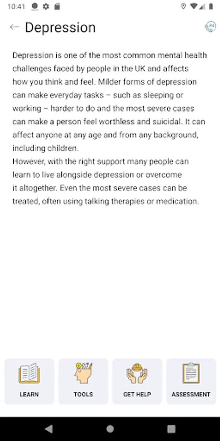 Users will initially be guided through a series of questions to help gain a basic understanding of what their issues are. Depending on the answers provided by the user, the app will: