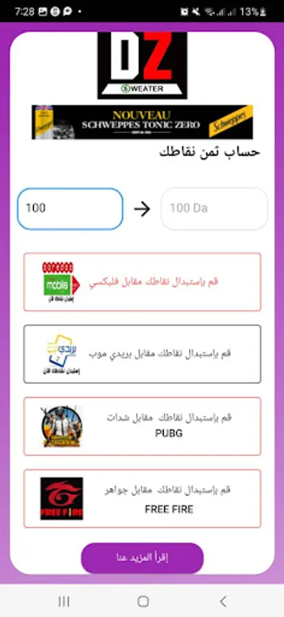 تطبيق يمكنك من خلاله حساب ثمن العملة الرقمية سويت والات مع تحديث اوتوماتيكي للسعر حسب المنصات الرقمية كما يمكنك من خلاله بيع نقاطك مقابل