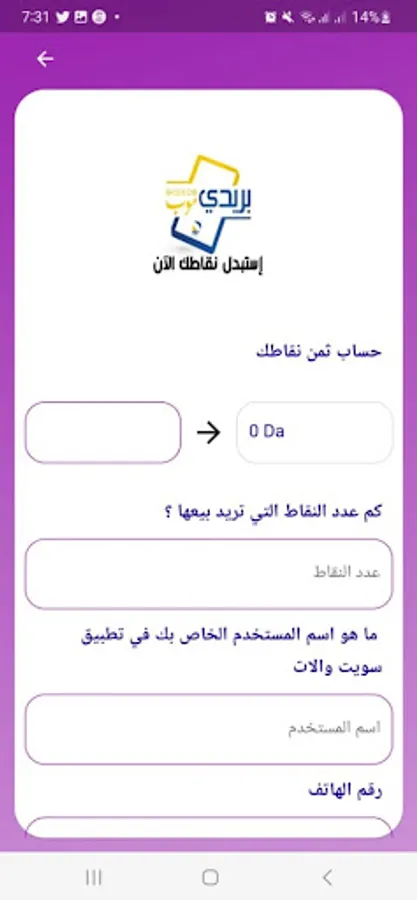 in this app my users and followers on you-tube will apply for an exchange of their "Sweat" which is cryptocurrency; for mobile credit or Dinar Algerian (thro Baridimoob service) , users will do all this step manually by choosing their favorite payment method and fill the required input information such as their username in the "sweat wallet app"' ( which is the wallet of this crypto currency ), email address , phone number , or their Bank ID ( RIP number ).