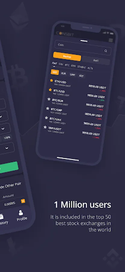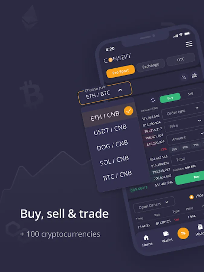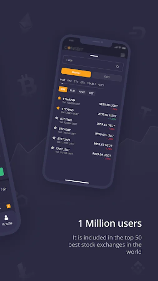 The exchange, which is always with you. Our Coinsbit app allows you to trade cryptocurrency from anywhere in the world. You do not need to have a computer with you to conclude a transaction - everything happens right on your smartphone.