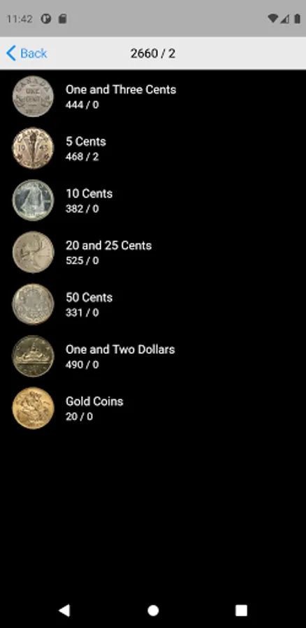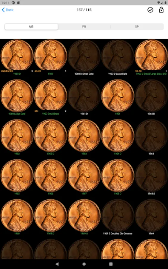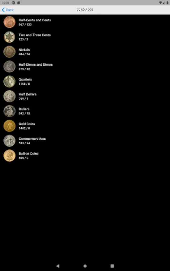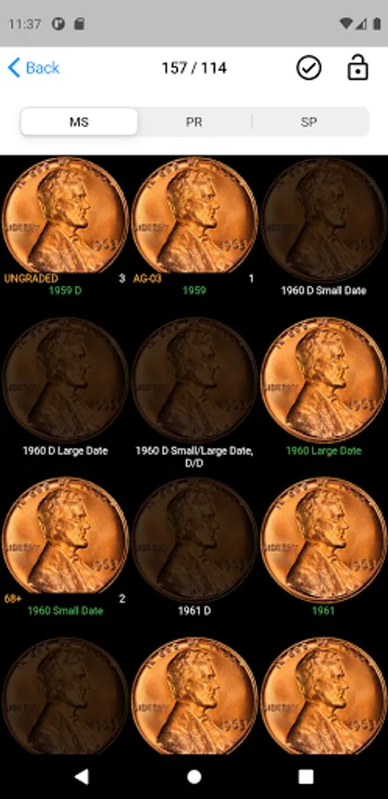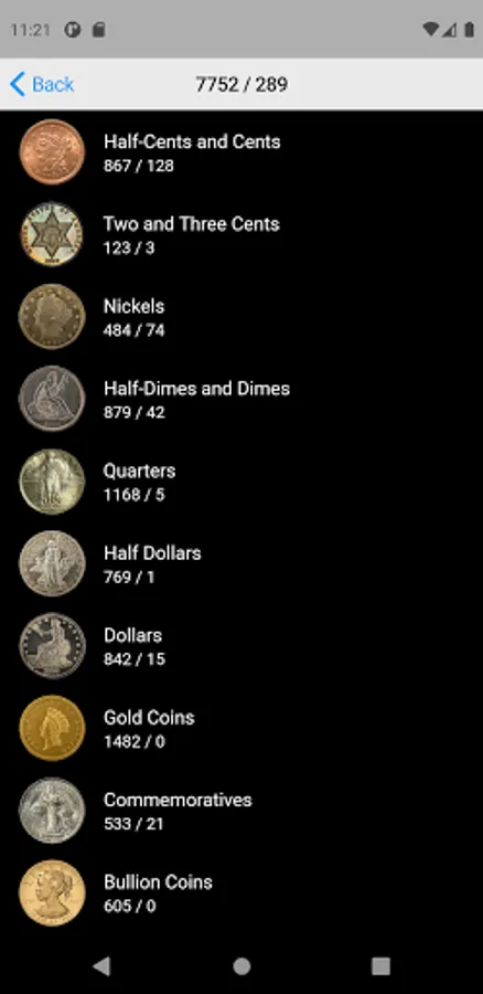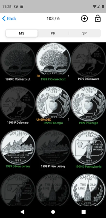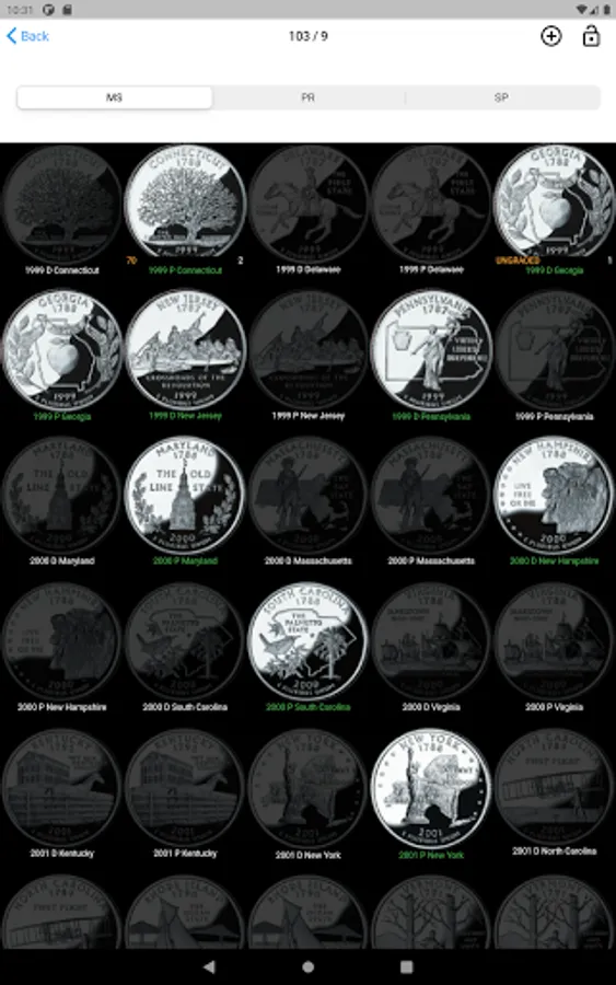 App allows to choose between 3 collecting mods: year, mint and varieties. App also contains Proof and Special Strike coins that user can show or hide.