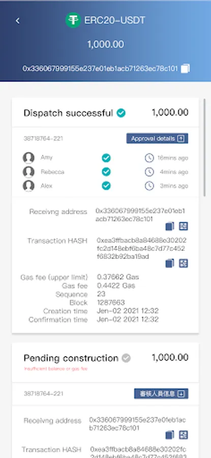- CoinSend supports approval process. When corporations configure roles, they can specify different data submission, data approval, data execution permissions etc. to achieve approval process.